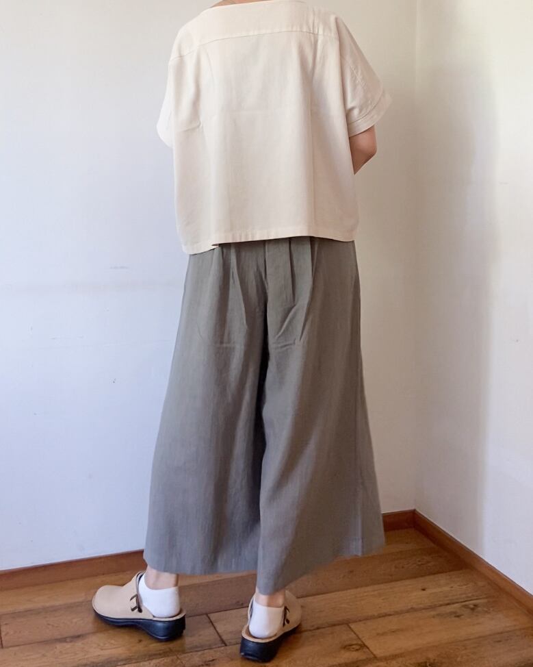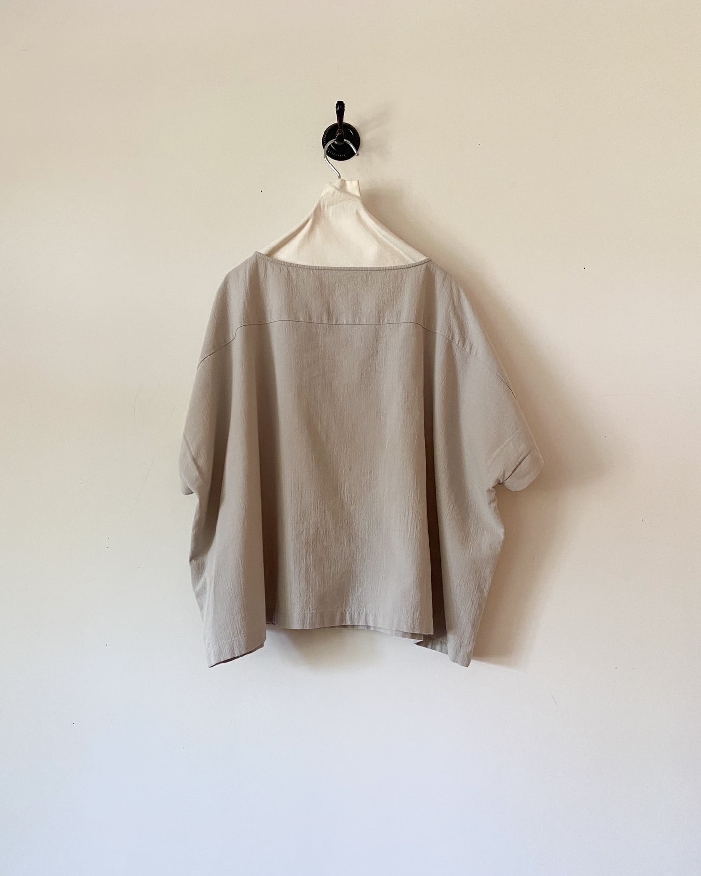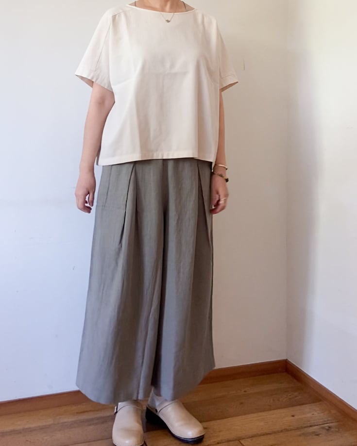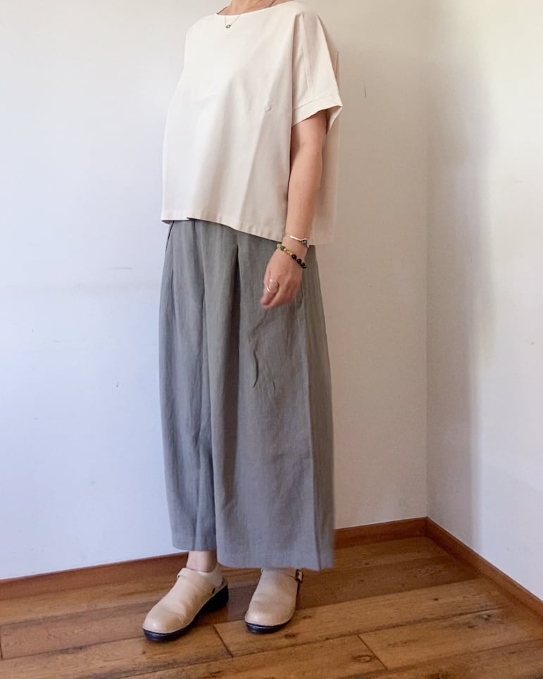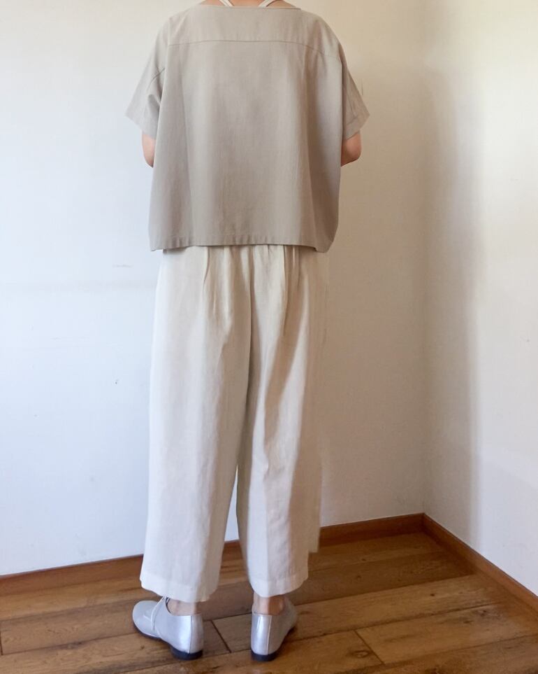 ハリ感のあるコットン100%生地はサラッとした肌離れの良い生地で、暑い季節に涼しく着られ、しっかりとした厚みがありながらも、柔らかな風合いで着ていく度に身体に馴染みます。