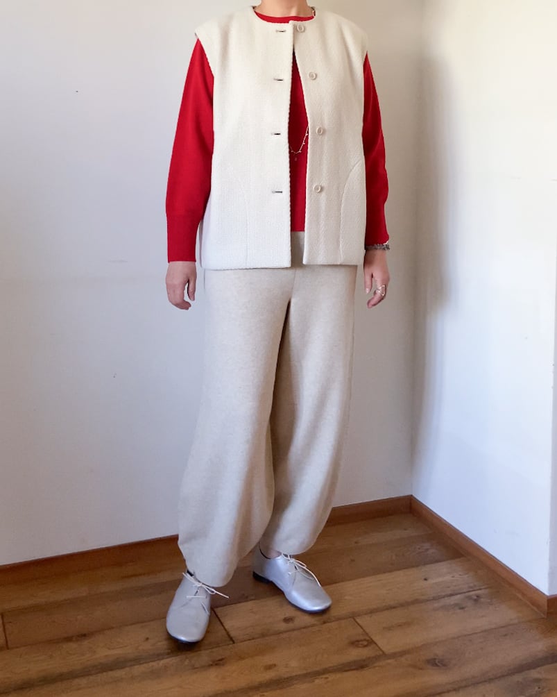 ウールシルクの上質な糸を使った、編み目が素敵なベスト