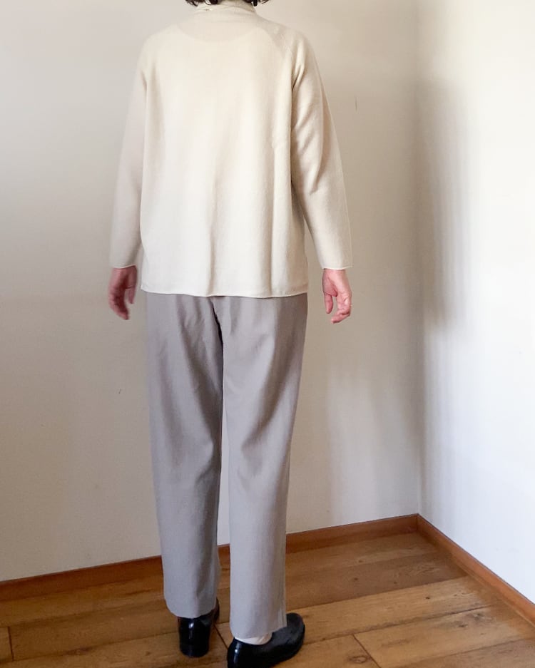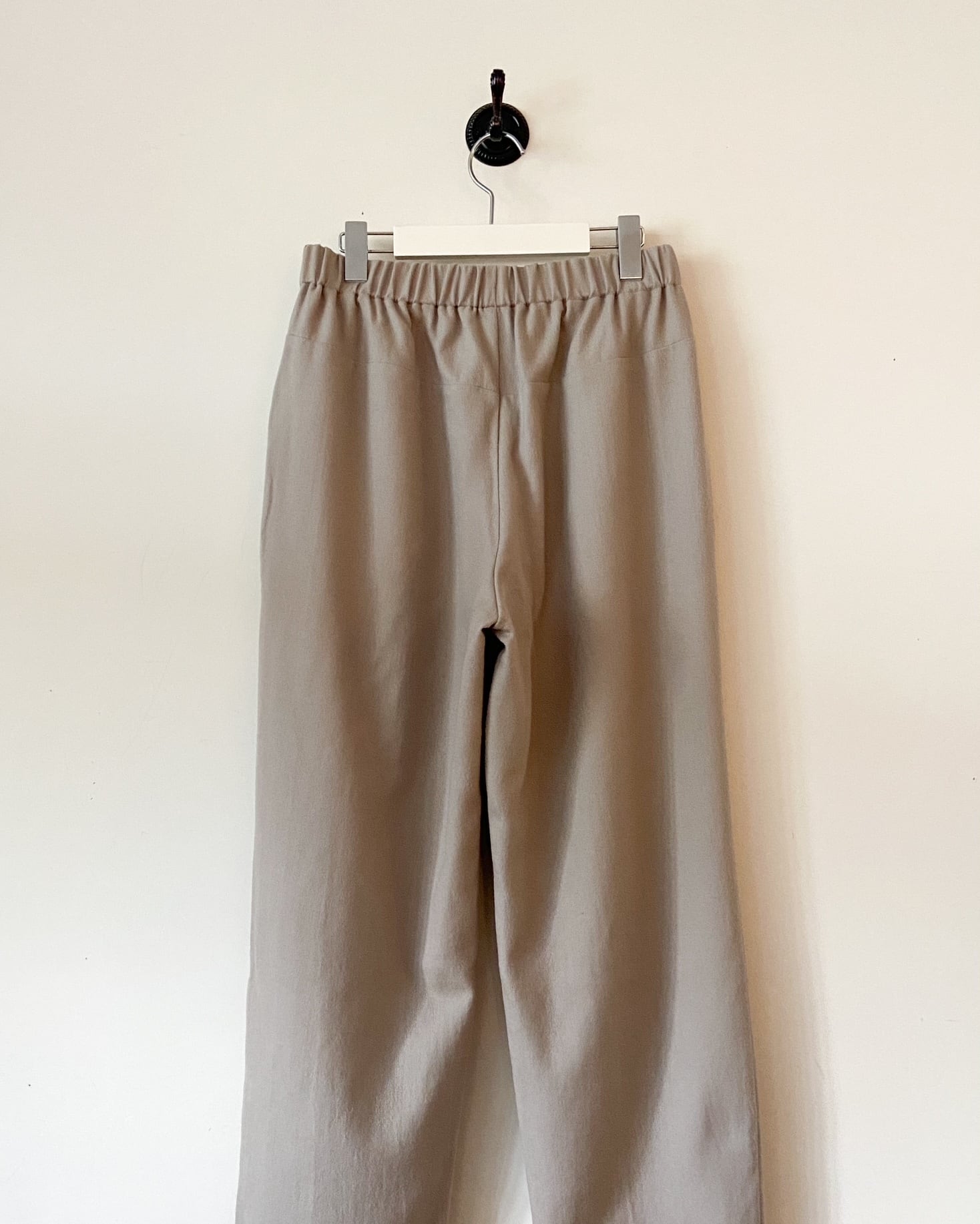 なめらかで細やかなウール生地を使ったワイドストレートパンツは