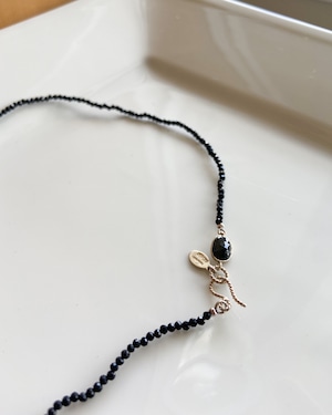 細かくカットされたオニキスビーズが動く度にキラキラと輝く、魅力的なネックレス