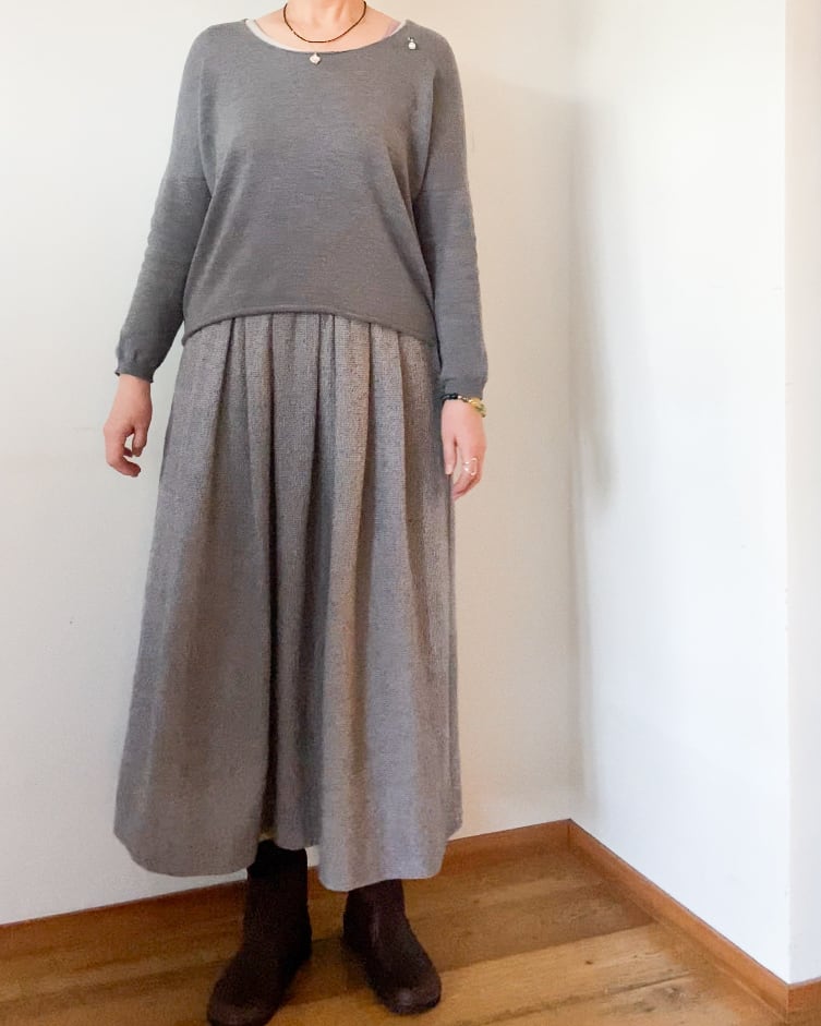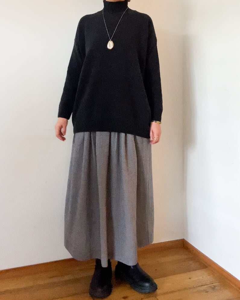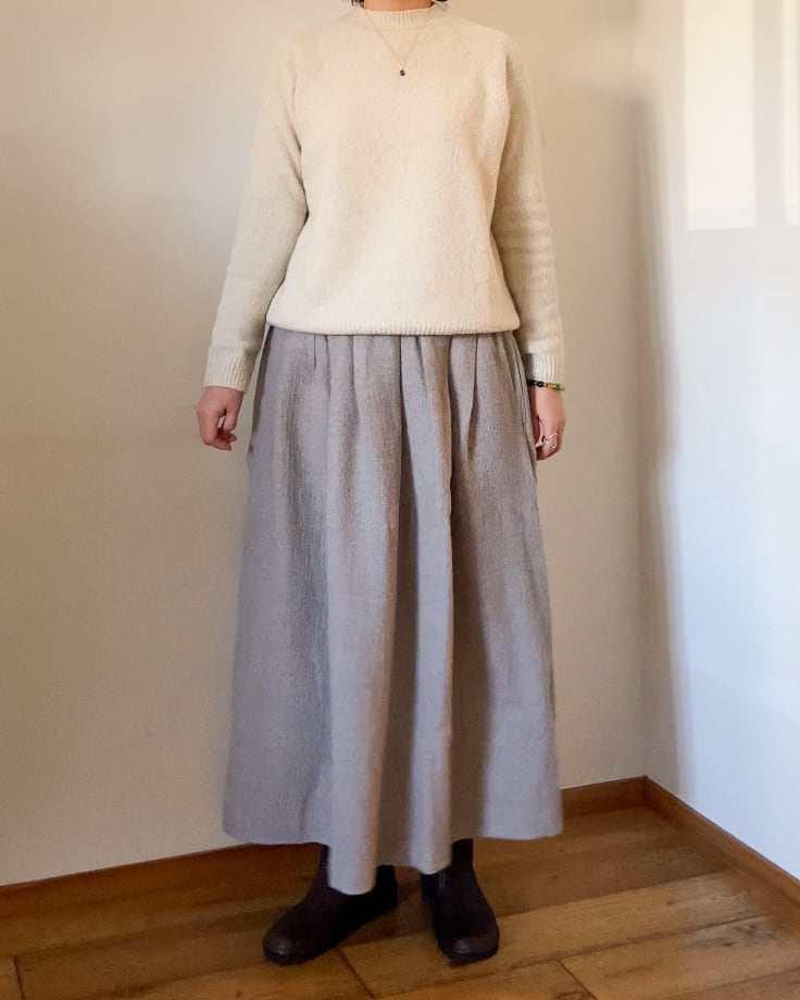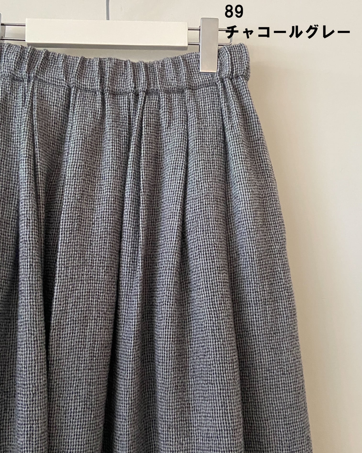 ふわりと柔らかなウール生地は軽くて温か、ゆるやかなフレア感が様々なトップスに合わせやすく着心地よく着ていただけます。