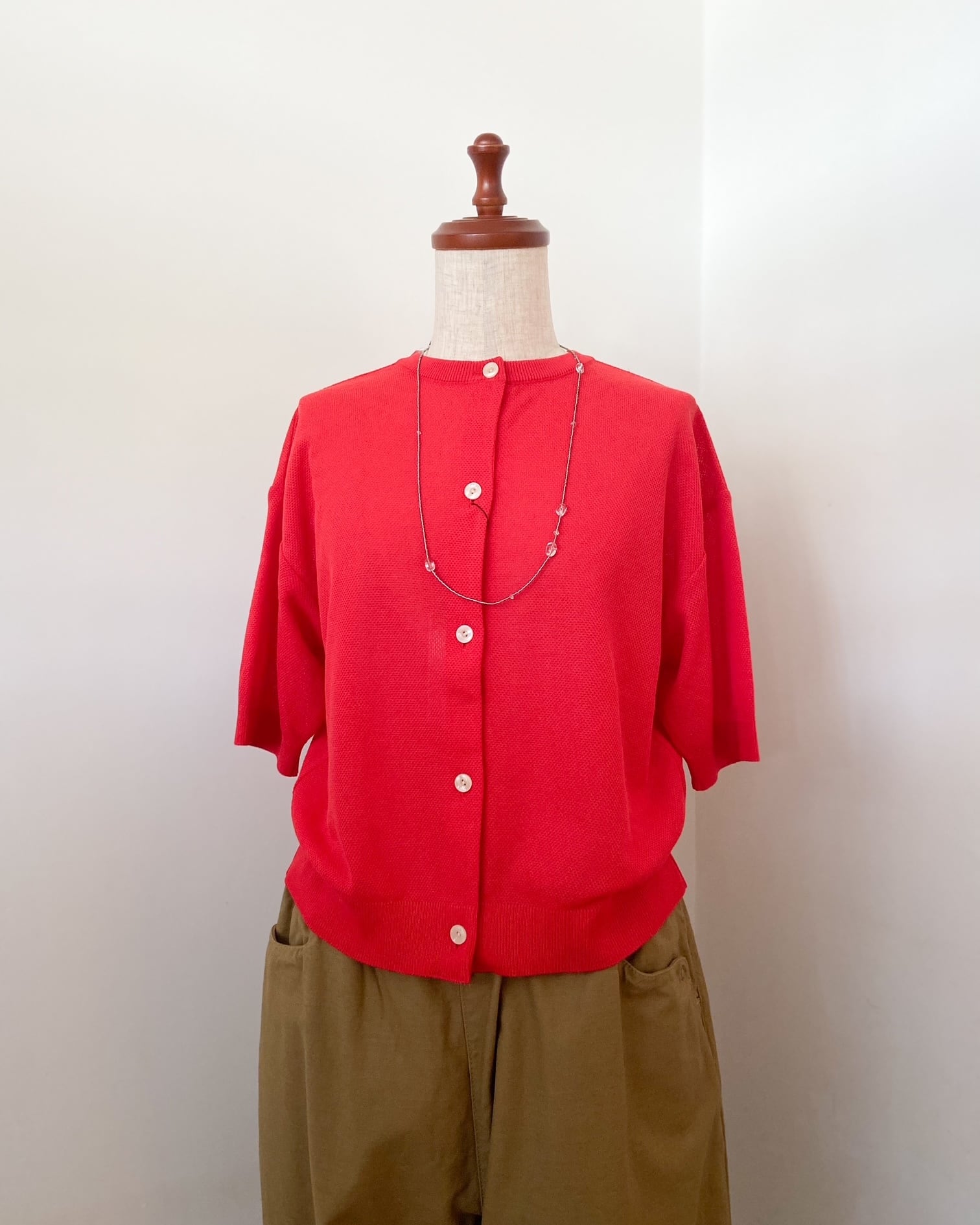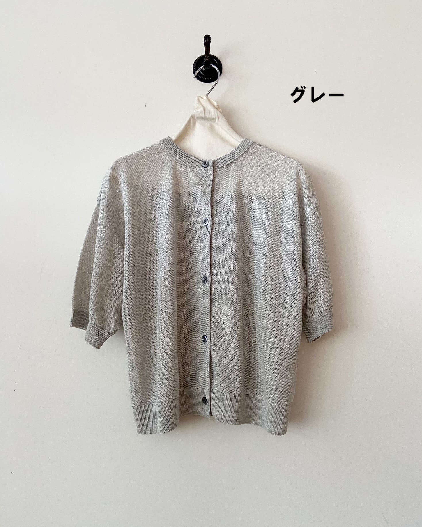 半袖カーディガン、前後どちらもご着用いただける2WAY使用になっています。