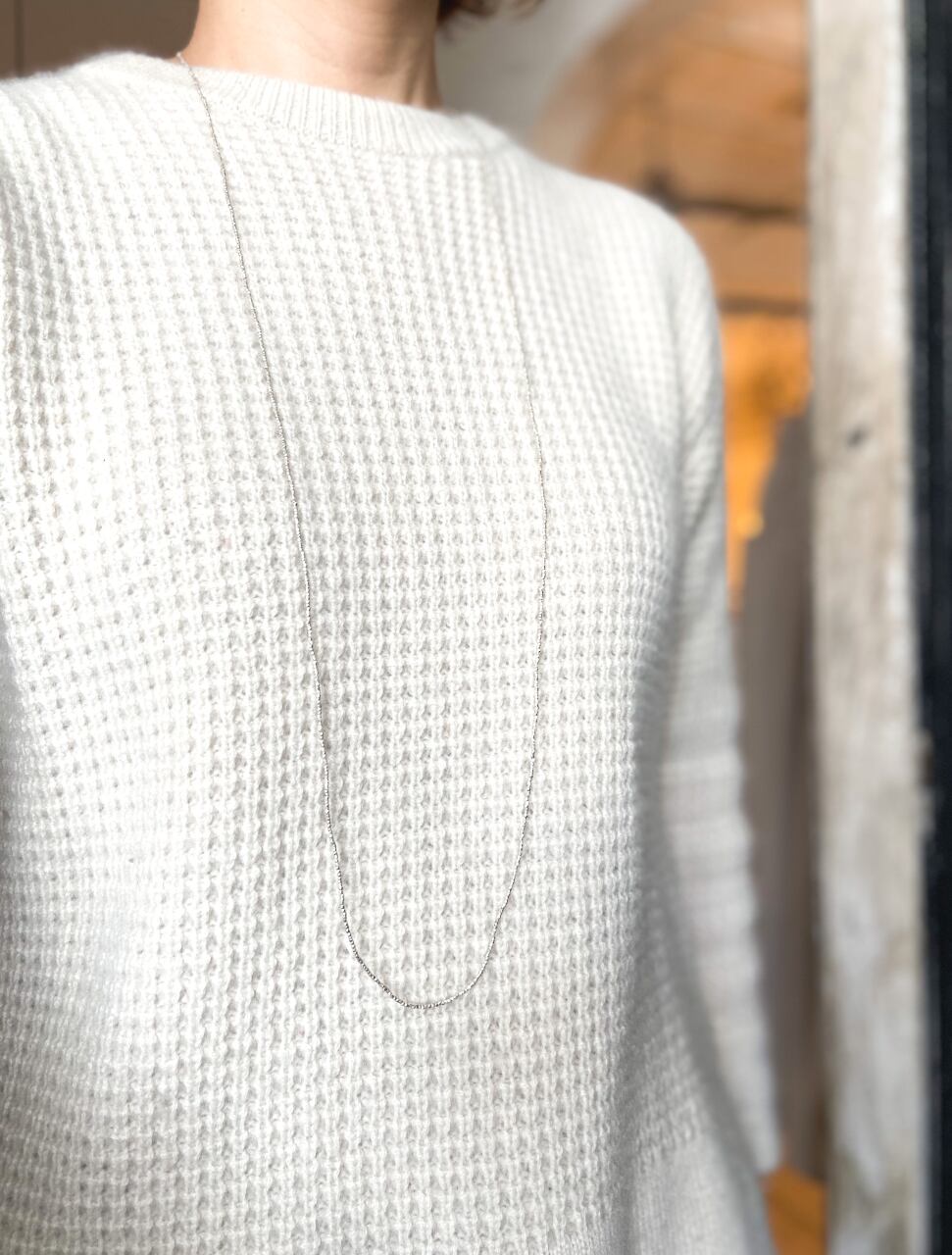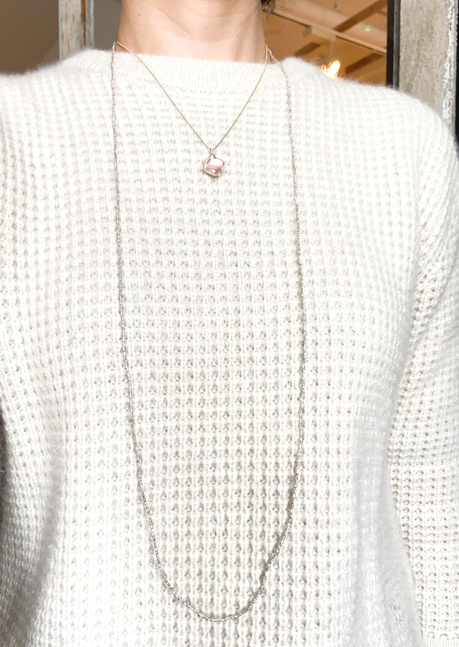 キラキラカットが施してある、シルバービーズを使ったロングネックレス