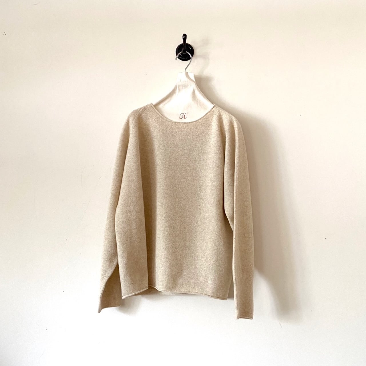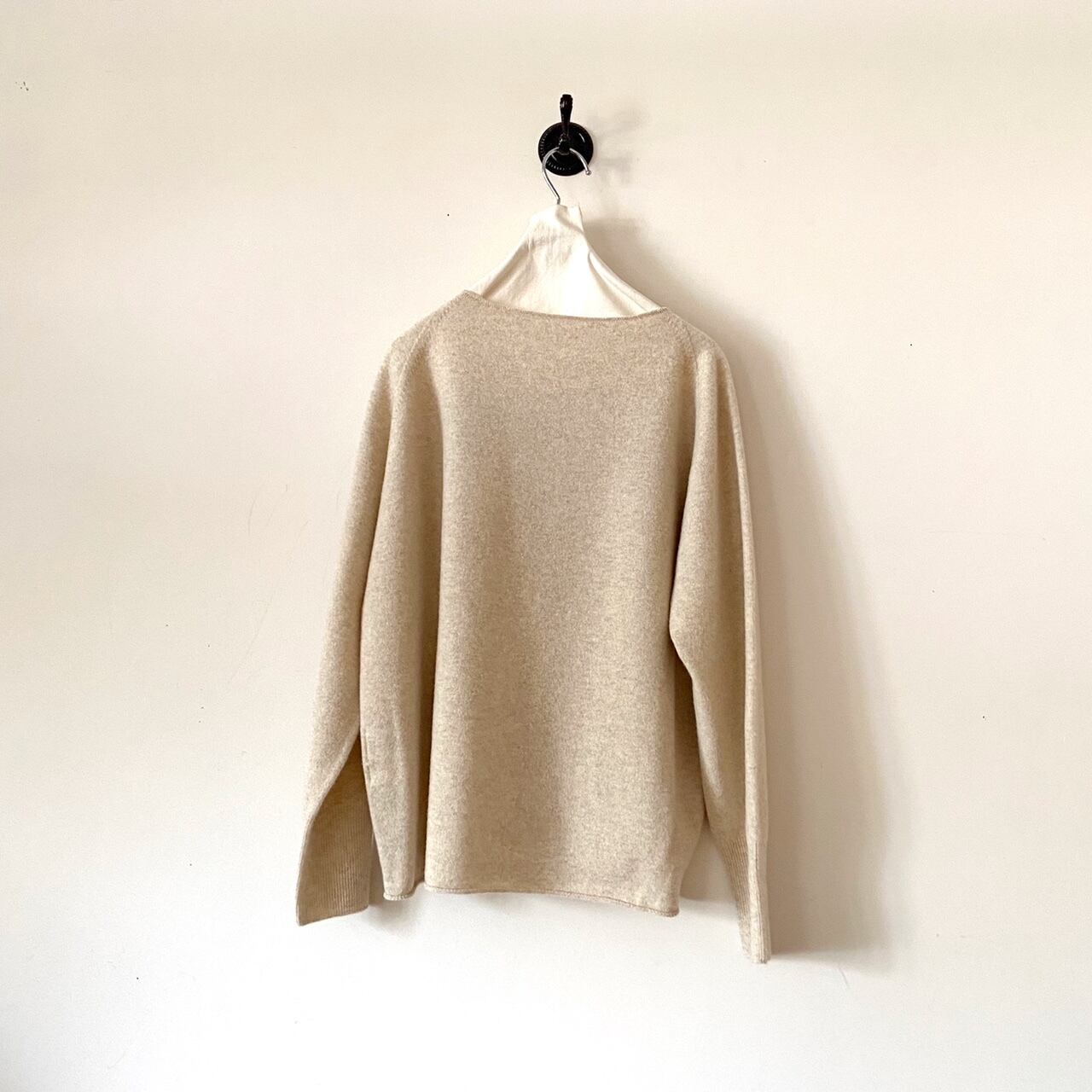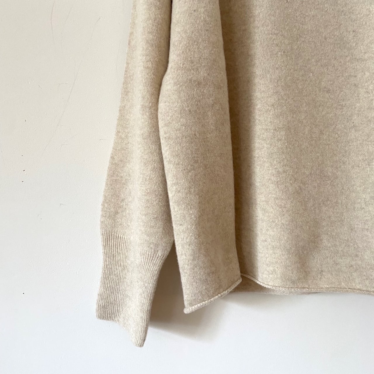 オーストラリア産メリノウールの中でも特に厳選され、最も高級とされる「エクストラファインラムズウール」を使用しています。シンプルなシルエットに袖口の長めのリブが特徴的です。手洗い可能なのも嬉しいポイント。