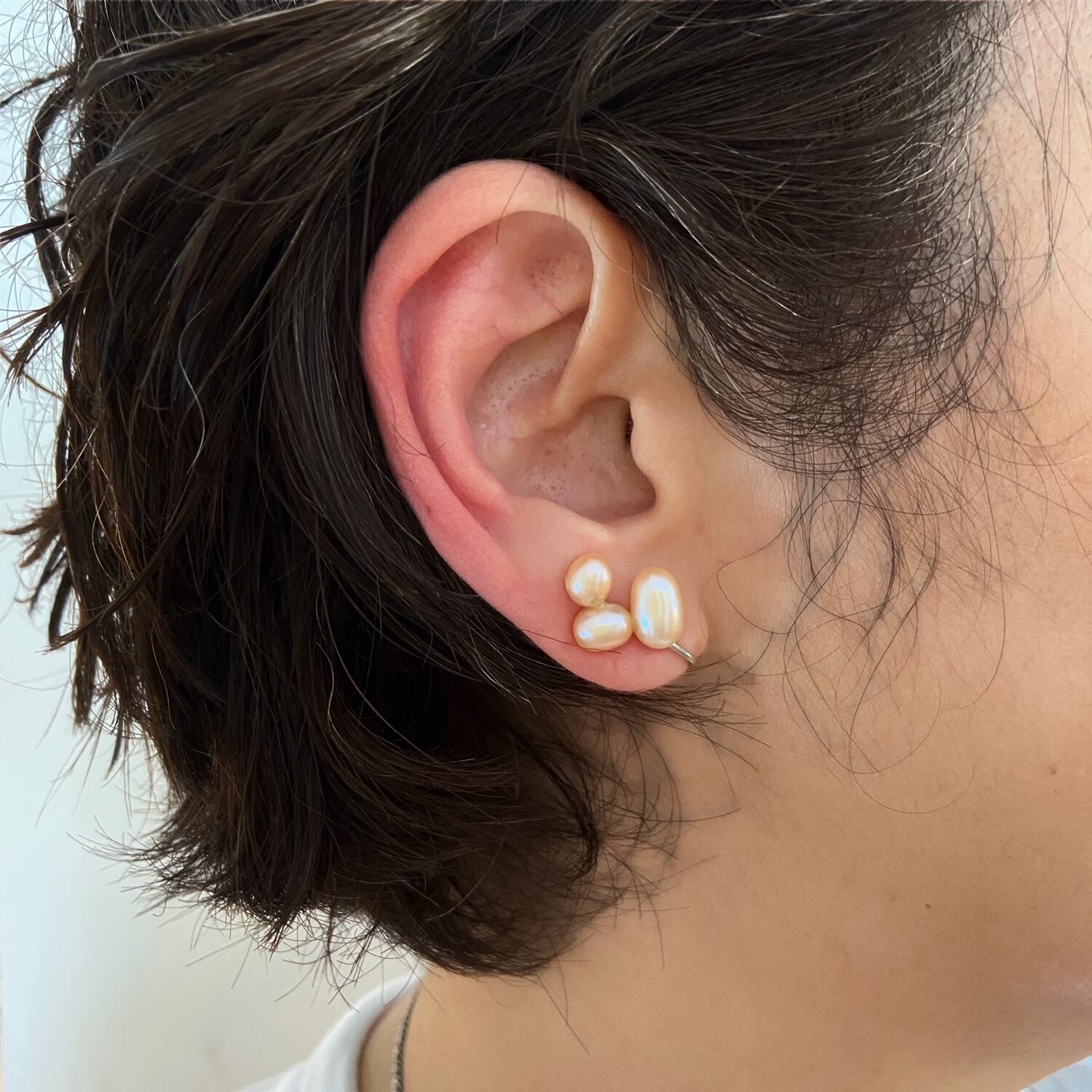 ピンクがかったパールが特徴的なイヤークリップ