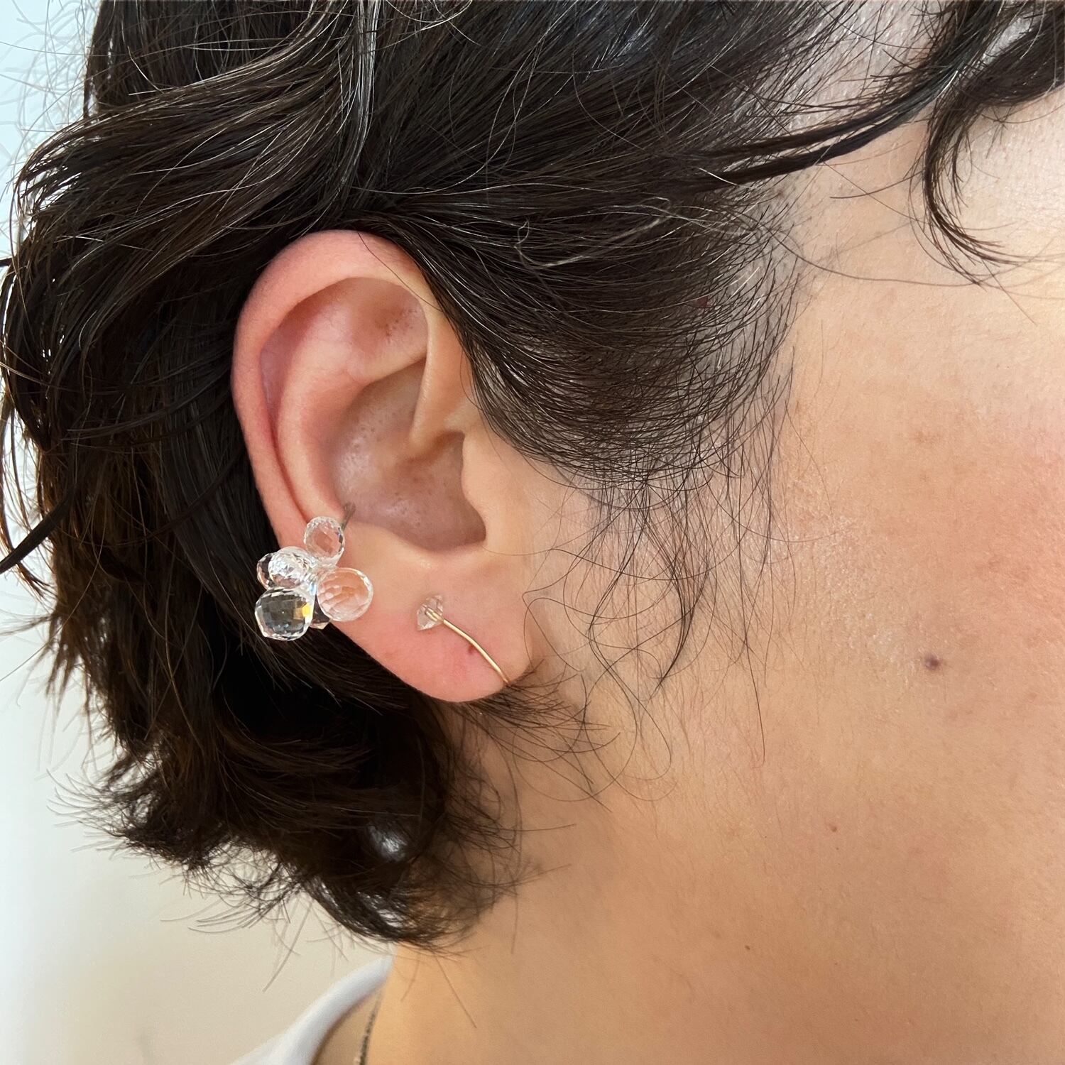 イヤークリップやピアス・イヤリングと重ね付けしても華やぎます。