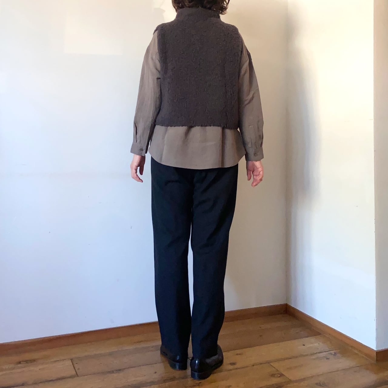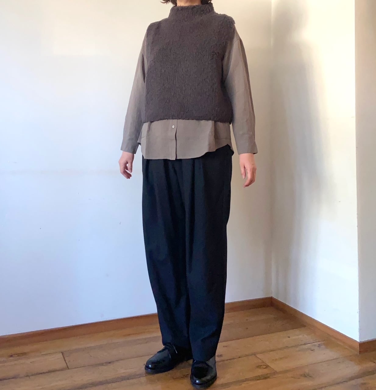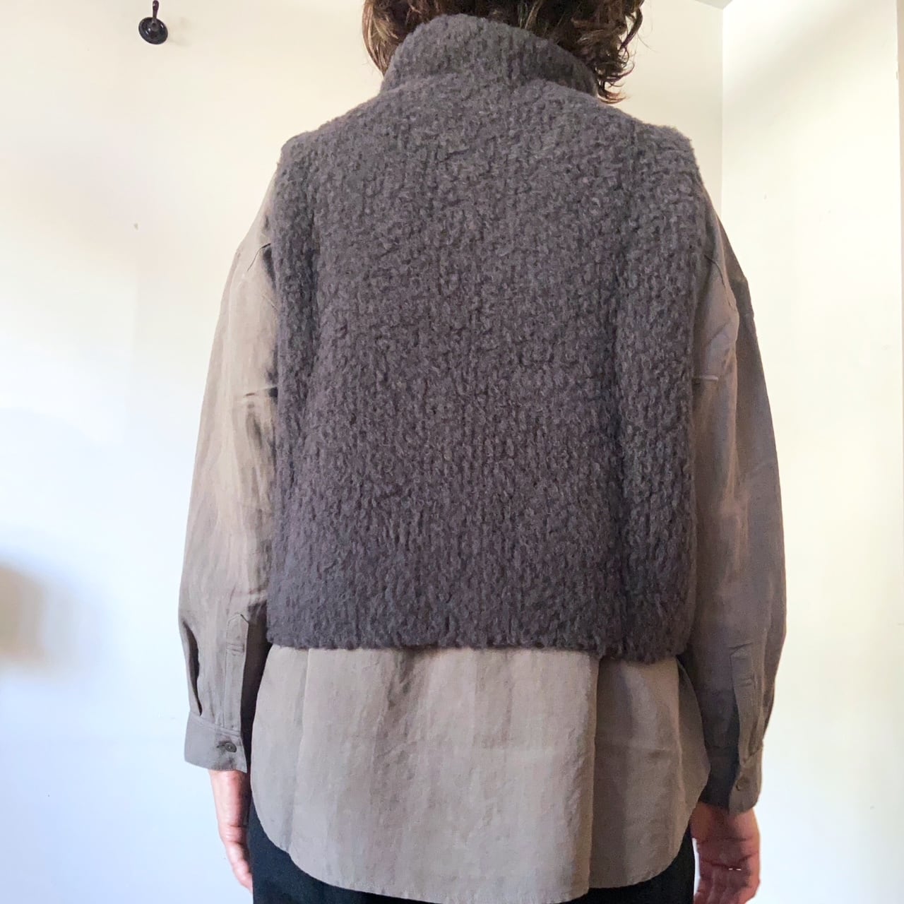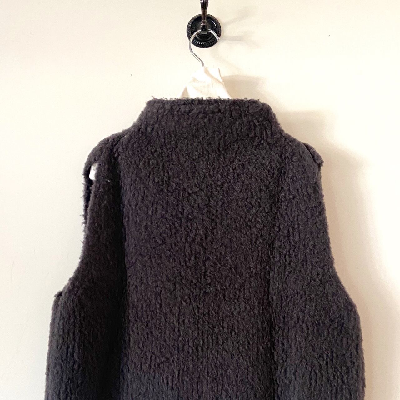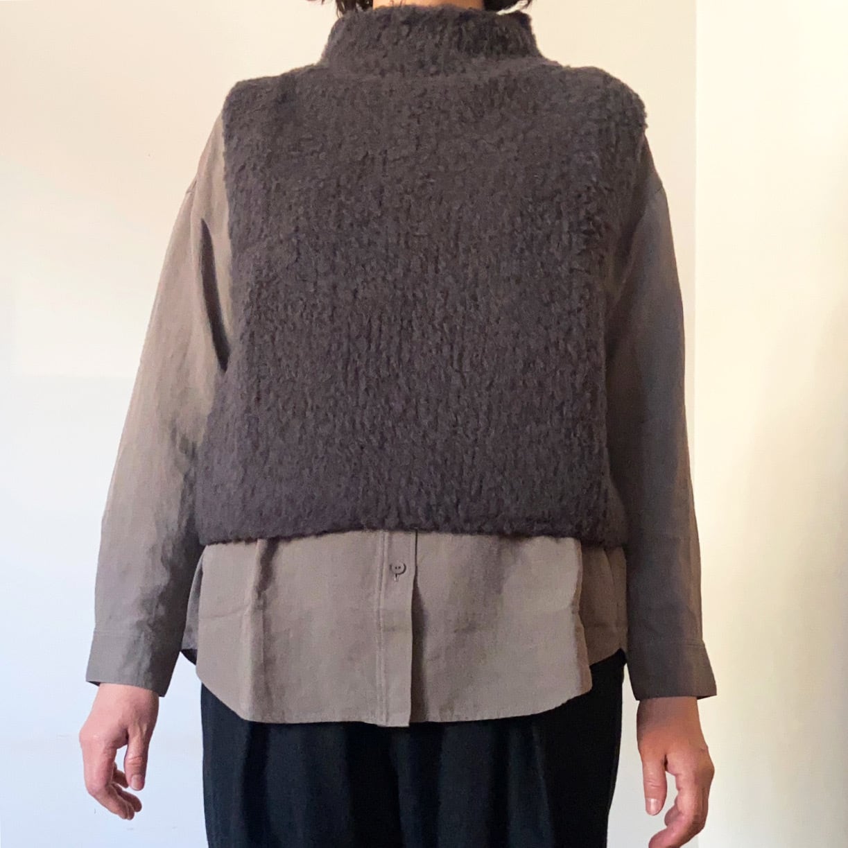 英国羊毛と南米ウールをブレンドした膨らみとハリのある糸を毛足部分に使用したモール糸。ボア加工を製品の状態で施しており、膨らみのある軽やかな仕上がりに。