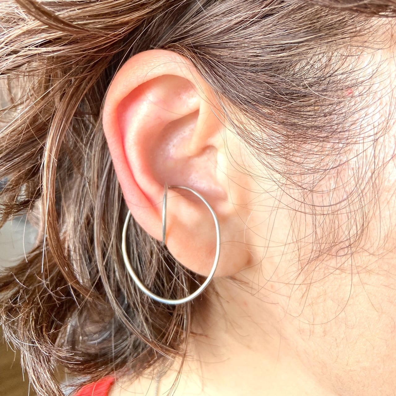 細身のシルバーを使ったイヤーカフ シンプルで使いやすく様々な装いに合わせやすいデザインになっています。