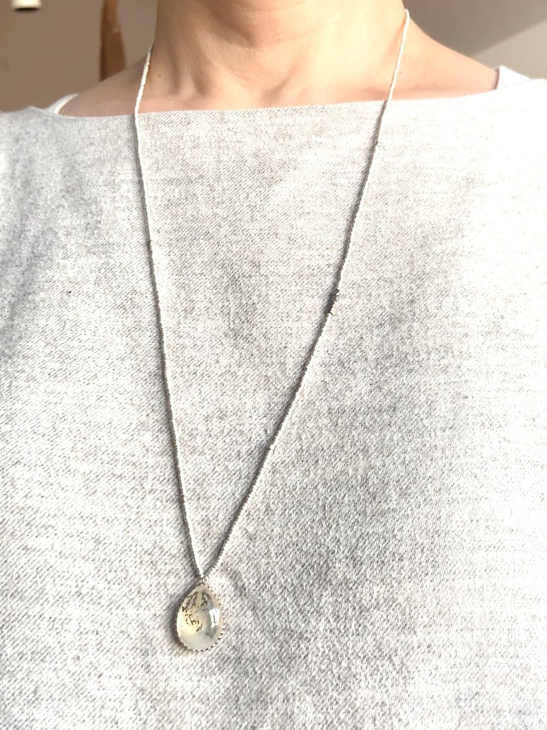 まるで森林の風景を石の中に閉じ込めたような、幻想的な美しさをもつ鉱物デンドリテッククォーツを使ったネックレスです。